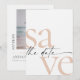 Dessa 5 x 7-tumsdisketter för att spara datumkorten har en minimalistisk utformning i stort och mjukt svart brev på en mycket lätt grått bakgrund med platshållare på baksidan för det förlovade paret namn, bröllop datum, platsinformation och ditt favoritfoto!