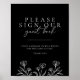 Enkelt svart, modern Blommigt Bröllop Guest Bok-te Poster