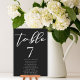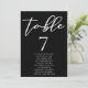 Chic och snyggt, vår minimalistiska vinterbröllopssamling har elegantens kursiva typografi för din moderna mottagning. Följ dina gäster till deras bord med öga som fångar ett fet, vitt skript på en svart bakgrund på bordsnumrets sittande kort med en lista över namn.
