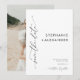 Notera din stora dag med tidlös stil. Den här minimalistiska svartvita designen innehåller texten på framsidan och ditt favoritfoto på baksidan - perfekt för par som kärlek är en ren, modern estetisk. Lägg bara till information, ladda upp fotot och låt ditt meddelande tala med elegans och enkelhet.n.