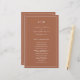Ett enkelt Bröllopsprogram med en modern utformning av eleganten med två brev-monogram överst och dina detaljer omgivna av ett tunt gräns. All text är vit över en terracotta/bränd orange/rost bakgrund och kan ändras i designredigeringsverktyget i verktyg. Framsidan har din ceremoni och baksidan har din bröllopsfest och tack för ditt budskap. En chic och snyggt som är underbar för ett minimalistiskt par. Dessa bröllopsprogram i billigten trycks på lakan av papper för ett budgetvänligt alternativ.