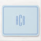 En ljus- och kornblomsblå enkel 3 brev monogramdesign på ett skrivbord. Ändra både teckensnitt och bakgrund om du vill ha ljusare färg. Skapa din egen monogrammade gåva till honom. Anpassa den rundade rektangeln gräns eller ta bort den om du vill.