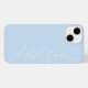 Anpassa detta minimalistiska, chic pastellblått iphone case som har ett handskrivet trendig-skript namn i stil i vitt.