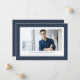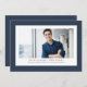 Det här enkla och sofistikerade tillkännagivandet från studenten innehåller ett vågrät på framsidan omgivet av ett marint blått ram med en tweed-effekt på öringbenet. Strukturen ser ut (märk väl att det inte är en riktig väv) ge den här designen - som också är en inbjudan från studenten - en klassisk akademisk stil och den enkla typen är perfektens personlig touch. Kortets baksida är en matchande marin blå mönster med plats för en andra foto- och studentfest-inbjudningstext. Texten och fotot kan också lämnas tomma. Lea Delaveris Design har även ett digitalt studenten-meddelande och en inbjudan att ladda ned och finns i en rad olika färg i stambenets tweed-grad-samling.