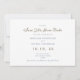 Enkla, moderna, minimalistiska, dammiga blåa förändrar datumkortet bröllop, med elegant guld blomma teckning.