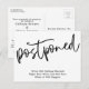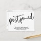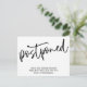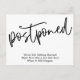 Om du föredrar djärvt och enkelt, kan det vara ett meddelande till dig. Framsidan har ett grafikhuvud som jag designat med ett modernt handskriftsteckensnitt som avslappnad "Uppskjuten". Nedre, det finns ett glatt meddelande som du kan redigera och som förklarar dina nyheter: "Vi är fortfarande Gifta sig! Höger nu är vi inte säkra på när det kommer att hända." Använda mallen fält att lägga till dina personuppgifter och ändra något av mitt förslag till formulering till kostym för dina behov och din situation.