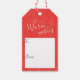 Den här enkla presentdesignen har en röd vattenfärgsbakgrund, den enkla frasen "Warm önskemål" och ger utrymme för handskriven "Till-mottagare" och "Från-presentgivare".