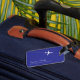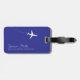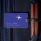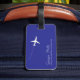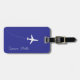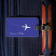 En enkel och modern konstruktion med ett stiliserat flygplan med prickad spalt mot royal-blå bakgrund, personlig med resenären namn. Ett bagagemärke med namn är viktigt av flera praktiska skäl vid resor. För det första är det ett snabbt och enkelt sätt att identifiera ditt bagage i havet från liknande påsar på flygplatser, i buss station eller på andra knutpunkter i transport. Detta kan spara dig att ta tid och minska risken för att av misstag ta någon annans väska eller få någon annan att ta din. Den tillhandahåller också en viktig kontaktinformationslänk i fodral som din väska får borttappad. Om ditt bagage olyckligtvis blir missplacerat under resan, gör det mycket enklare för flygbolags eller transport personal att återförena dig med dina tillhörigheter om du har ditt namn och kontaktuppgifter på märkrn. Denna enkla åtgärd ökar chanserna till en snabb och korrekt hämtningsplan processaa.