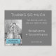 Den här grundläggande bröllop-tack-du-vykortsdesignen innehåller budskapet "THANKS SO MUCH för att du är med oss på vår speciella dag!" på framsidan, tillsammans med ett anpassat budskap på baksidan. På framsidan finns också ett foto av personligen. Det skulle kunna användas för att uttrycka tacksamhet till någon som var gäst vid en ceremoni i bröllop. Ett minsta tack som detta kan vara väl lämpat för ett mikro-bröllop.