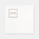 Tunn kvadratisk linje med ett par inledande brev i elegant font-stil, med bilden av ett litet rosaftigt hjärta... placerad i det övre lämnat hörnet av napkin.