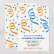 Enkla 7-års inbjudningar Konfetti Blå kalligrafi typografi milstolpe klassisk elegant färgglad firande modern