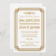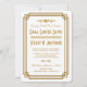 De här bröllopsinbjudningarna har en vit palett och guld färg, ett geometriskt ram och andra stilistiska detaljer som alla inspireras av Art Deco och de kommande 20 åren. Du kan anpassa exempeltexten till fält.