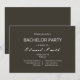 Enkel inbjudan till sängkammarparty för brudgummen, horisontellt format. Enhetlig krittavelsgrå med vit text.