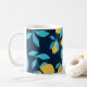 Enkla citrusfrukter: citroner på blå. kaffemugg