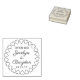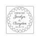 Lägg till en personlig finish på bröllopsinbjudningar, förlovningsannonser, tackkort, "spara datum"-kort eller bröllopsfavoriter med denna anpassade gummistämpel. All text är lätt att anpassa eller ta bort. Designen har en krans gjord av enkla eleganta hjärtan, handskrivna namn på paret i stilig kaligrafi, datum och eventuell hälsning högst upp. Denna romantiska gummistämpel är ett stilrent tillägg till din speciella dag. Perfekt även för en brudshow eller årsdag.