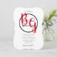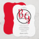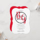 Den här designen har en elegant som ändå är enkel arrangemang av bridens och gruppens personlig initialer. Par namn är omringat med ett svart ring och placerat ovanpå bridens och rummets första initialer i namn som visas i röd färg typografi. Den här röda, svarta och vita designen är enkel, men elegant på alla sätt. Den omvända visningen har en röd färg-bakgrund. Kombinationen av färg skapar ett sofistikerat, trendig och chic stil. Inbjudan till elegant bröllop är utformad med modernt inslag. Den enkla uppställningen av typografin ge är ett distinkt stil. Det finns även alternativ för matchning av bröllop-kontorsartiklar och andra bröllopsinbjudningsformat.