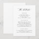 Minimalistisk, elegant klassisk formell bröllopsgästinformationsdetaljer bifogad kortmall med en kalligrafiskrift i enkelt svart och vitt och textmall. Kortet är helt anpassningsbart - alla färger kan ändras, både på texten och bakgrunden.