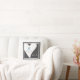 Produktdesignen visar två vita duvor som sitter tillsammans och ser upp mot ett ljusblått hjärta. Vita duvor är symboler för kärlek, tur, fred och välstånd. Denna enkla söta fågelillustration gör en modern och unik kastkudde med personlig text - Gåside för bröllop, brudshow, årsdag eller andra romantiska tillfällen!