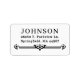 Enkelt svart på vita returetiketter med ett klassiskt serif-teckensnitt ovanför en ren, linjerad rulla för en chic, minimalt.