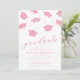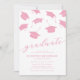 Minimalistiska inbjudningar till examensfest med fallande rosa examensmössor och en modern textmall som är enkel att anpassa.