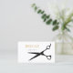 Ett enkelt och modernt hårstylist affärskort i svart och guld med en silhuett av ett par hårklippande shears. Perfekt för professionellens hårstilist.
