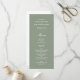 Anpassa den här Snyggten Kort för enkelt grundläggande Lodrät, designat med vit Bröllopsprogram på oliv grönt bakgrund.