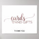 Denna enkla roséguldkort och presentaffisch är perfekt för ett modernt bröllop. Den minimalistiska designen har en elegant penselskrift och ett vackert feminint hjärta i falskt roséguld. Textraden längst ner på skylten kan anpassas med datumet, brudens och brudgummens namn eller ett kort meddelande som "Tack".