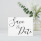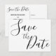 Enkla skript bröllop Spara datum-kort med utbytbar svart text (du kan ändra texten) tryckt på vit bakgrund