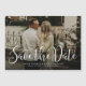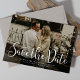 Du är förlovad! Sprid dina nyheter från lycklig och datumet för din stora dag med det här vågrät med ett foto spara vykortet för datum. Förlovningens foto kommer att bli programmets stjärna mot det enkla vita skriptet "spara datumet". På baksidan hittar du plats för din returadress, anpassningsbar, webbplatsinformation och allt annat du vill inkludera för dina gäster. Låt det lyckliga vara när det har börjat!