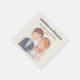 Dessa bröllopsservetter med pappersduk har en charmig illustration av en brud och en brudgumme. Brudgummen avbildas med kort brunt hår och ljus hy, och han bär en marinblå kavaj över en ljusblå skjorta med krage och en vit slips. Han har en liten boutonniere fäst vid sin rockslapp.