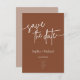 Sätt tonen för din bröllopsfest med dessa otvungna eleganta boho "spara datum"-kort, med en varm terrakotta-palett och minimalistisk botanisk linjekonst. Den rena, organiska designen kombinerar jordnära charm med modern enkelhet - perfekt för par som älskar underdriven sofistikering.