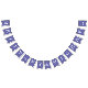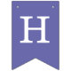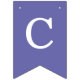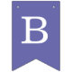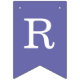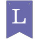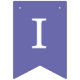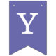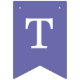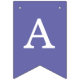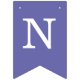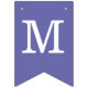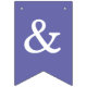 En enkel banner med flaggor för ett violett bröllop, med namnen på bruden och brudgummen, med vita bokstäver på violett bakgrund.