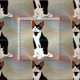 En stilig svartvit tecknadstilkatt sitter vänta självbelåtet dig.