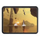 Enorm zeppelin i luften i sunetluften, fantasi, fluga, flyg, roligt, hav, stenar, hav, sol, solnedgång, vatten, waterfaslls, zeppelin