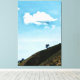 Ett landskapsmoment av ett stort vitt moln som flyter över en kall där ett enda träd växer på den. Copyright © Kimberly J Tilley.
