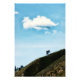 Ett landskapsmoment av ett vitt fluffmoln i form av en fågel som flyter över ett enda träd på en högplatta. Copyright ©2017 Kimberly J Tilley.