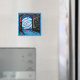 En ensam glödande figur som står bredvid ett fönster med spiral galaxi utanför. Original är här: https://www.dailypaintworks.com/fineart/alexandra-cook/alone-with-the-shiny-abyss-/855672