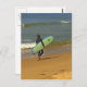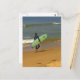 Surfare med bräda som går på stranden
