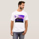 Ett singelträd står på ett mycket litet land samlas bara i mittet av ett purpurfärgat hav mot en purpurfärgad/rosa himmel. Ett original- digitalt landskap betitlad "ensamhet",