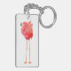 Original- konstmålning av en rosa karibisk flamingo av konstnären Carolyn McFann av studion för två spinnakatter som skrivs ut på en kvalitets- och anpassadeakrylkeychain för tropisk fågel, fläktar.