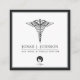ETT MINDRE ENERGIFÖRHÅLLANDE| affärskort för hemolaryngologi med en medicinteknisk antydningssymbol på ett enkelt svart, grått och vitt kvadratiska kort.