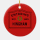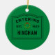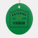 Julens helgdagar i New England skulle inte vara fullständiga utan en festlig "Entering Hingham"-prydnad. Underbar presentidé för någon som bor i staden Hingham MORSA, eller ett Hingham-kvarter. Ge ett till dina föräldrar, mor- och farföräldrar, nya lyweds, välkommen till grannskapet, husuppvärmning till namn. Köp en till alla på din julklapp.