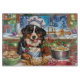 Fånga glädjen av julbakning med denna underbara scen med en glad kock omgiven av julgodis och festliga dekorationer. En hjärtlig firande av säsongens sötaste traditioner.