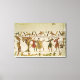 Fransk School's Envoys från Duke William Sent to Count Guy of Ponthieu, detaljer från Bayeux Tapestry, före 1082 (wool embroidery on linen) som ligger på Musee de la Tapisserie, Bayeux, Frankrike. Envoys från Duke William skickas till greve Guy of Ponthieu, detaljuppgifter från Bayeux-universitetet, innan 1082 (ullbroderier på linen) skapades runt 1100-talet.