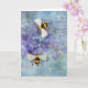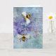 Ett digitalt kollage av lila blommor med honungsbin, skuggor av en pansy bouquet och det bleka avtrycket av lakan musik, på en blå och grönt marmorerad bakgrund, skapar ett vackert och ovanligt Mors dag-kort.