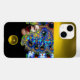 Färgfull, elegant och konstnärlig fraktalmask med levande pärlor i blått, lila, svart, gult, röd.rosa, fuchsia och ljusa 3D-stenar.Unik digital konst, fraktal återgivning och utformning av Bulgan Lumini (c)