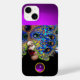 Färgfull, elegant och konstnärlig fraktalmask med levande pärlor i blått, lila, svart, gult, röd.rosa, fuchsia och ljusa 3D-stenar.Unik digital konst, fraktal återgivning och utformning av Bulgan Lumini (c)