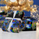 Färgstark, elegant och konstnärlig fraktalmask med levande pärlor i blått, lila, svart, gult, röd.rosa, fuchsia och ljusa 3D-stenar.Unik digital konst, fraktal rendering och design av Bulgan Lumini