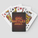 En dynamisk och intensiv design med texten "Epic Battles Await" i ett fet, rött teckensnitt. Texten återges mot en bakgrund av en snabb och dynamisk strid mot färg, som väcker en känsla av uppståndelse och förväntan. Den övergripande sammansättningen är visuellt slående och fångar kärnan i episka strider.