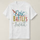 T-shirten har frasen "Epic Battles Await" i en spricka i färg. Varje ord är en annan vibrerande nyans med en lätt tryckt effekt som ge ger en liten fläck av vintage. Bakgrunden är en enkel neutralt som låter den flerfärgade texten gå i centrum.